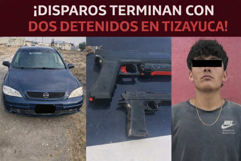 La madrugada de este operativo en la colonia Los Colorines, en el municipio de Tizayuca, terminó con dos personas aseguradas y el decomiso de un arma de fuego, luego de que vecinos reportaran detonaciones al aire que encendieron la alerta entre las corporaciones de seguridad.