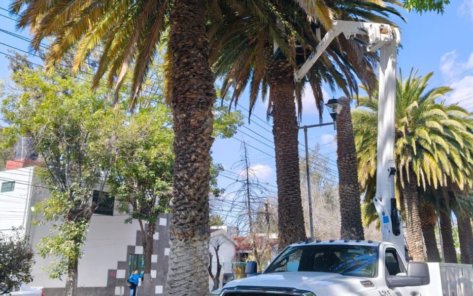 Un total de 11 Palmeras Canarias ubicadas sobre la avenida Francisco I. Madero, en Pachuca, fueron sometidas a trabajos de muestreo y aplicación de biológicos como parte de un seguimiento técnico para conocer su estado de salud y atender posibles afectaciones.