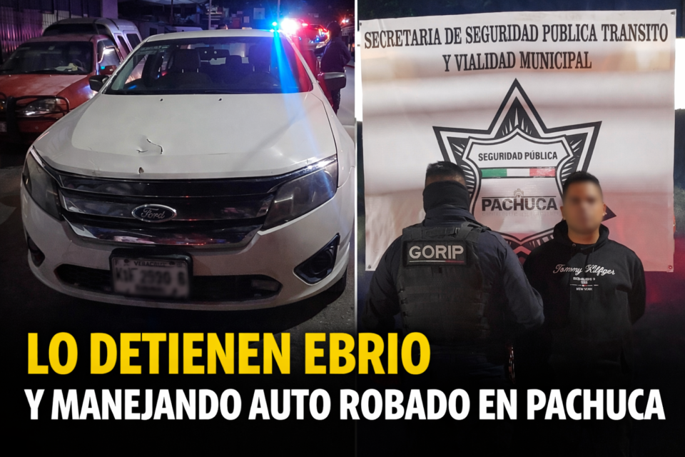 Lo detienen en Pachuca: manejaba ebrio, sin luces… y en auto robado